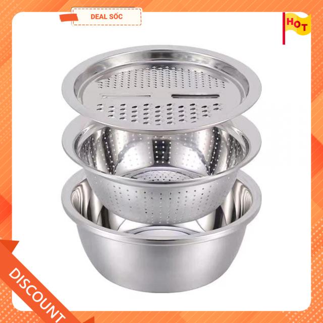 Nhà cửa & Đời sống > Dụng cụ nhà bếp > Bàn nạo, dụng cụ bào, cắt || Bộ rổ nạo inox kèm chậuCòn hàng
