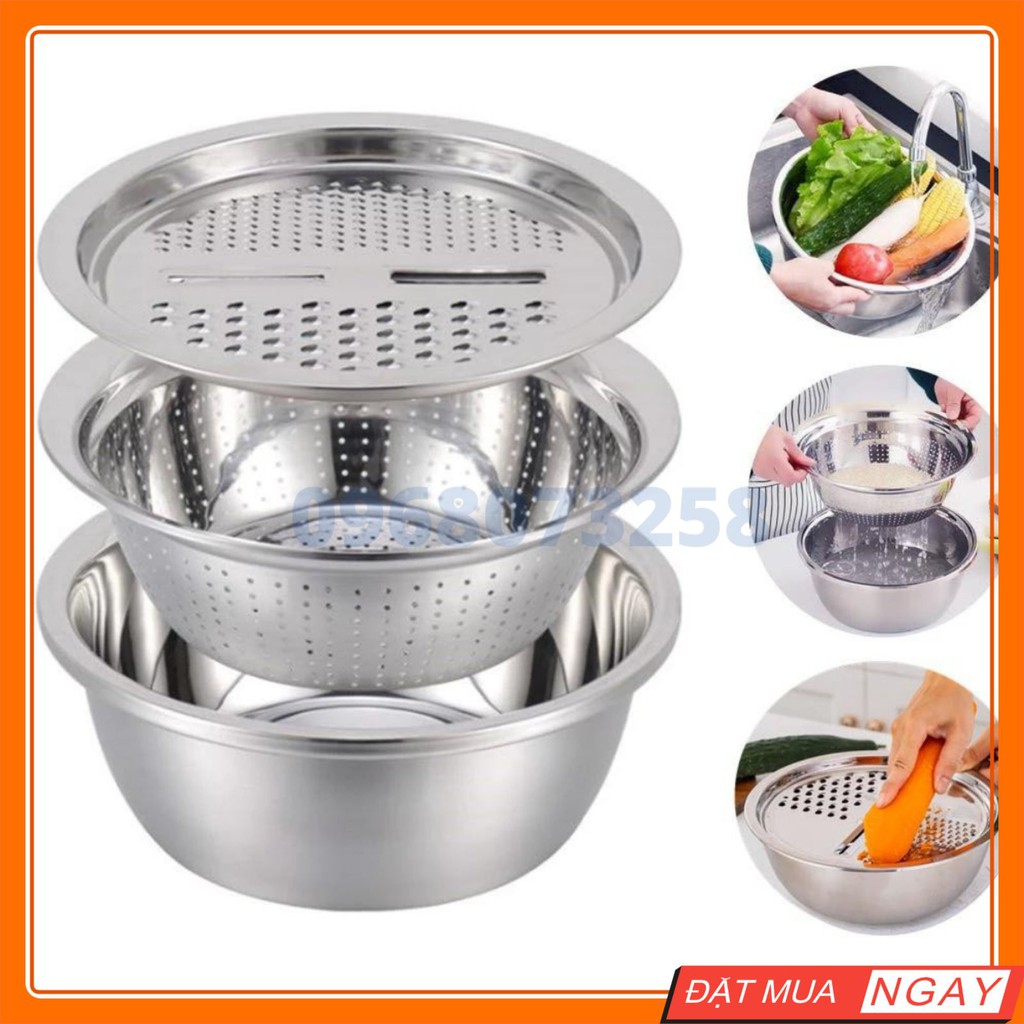 Nhà cửa & Đời sống > Dụng cụ nhà bếp > Bàn nạo, dụng cụ bào, cắt || Rổ Nạo Inox Nạo Rau Củ Đa Năng 3in1 Xoay 360 Độ - Bộ Bào Nạo Rau Củ Kiêm Rổ Và Chậu Inox Đa NăngCòn hàng