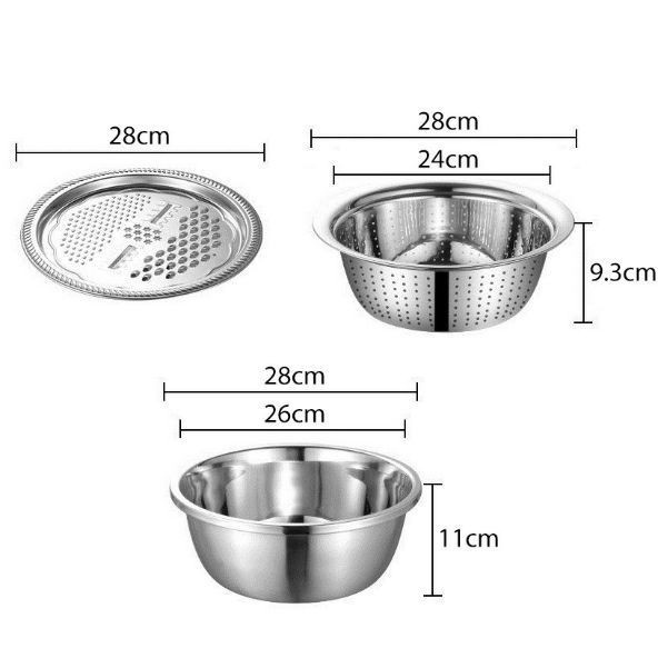 Nhà cửa & Đời sống > Dụng cụ nhà bếp > Bàn nạo, dụng cụ bào, cắt || Bộ rổ nạo rau củ 3 món - Rổ nạo rau củ kiêm rổ và chậu inox cao cấp đa năng,tiện lợi dùng nhà bếpCòn hàng