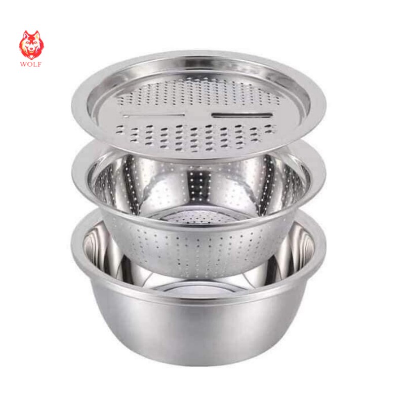 Bộ Rổ Nạo Rau Củ Inox Kèm Chậu Đa Năng 3 Trong 1 Siêu Tiện Dụng