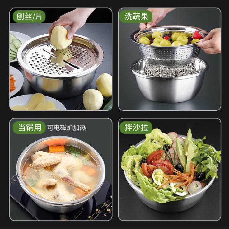 MÃ NÀY ĐANG SIÊU HOT NHÉ CÁC TÌNH YÊU🔴BỘ RỔ NẠO INOX 304 ĐA NĂNG TIỆN LỢI 3 CHI TIẾT