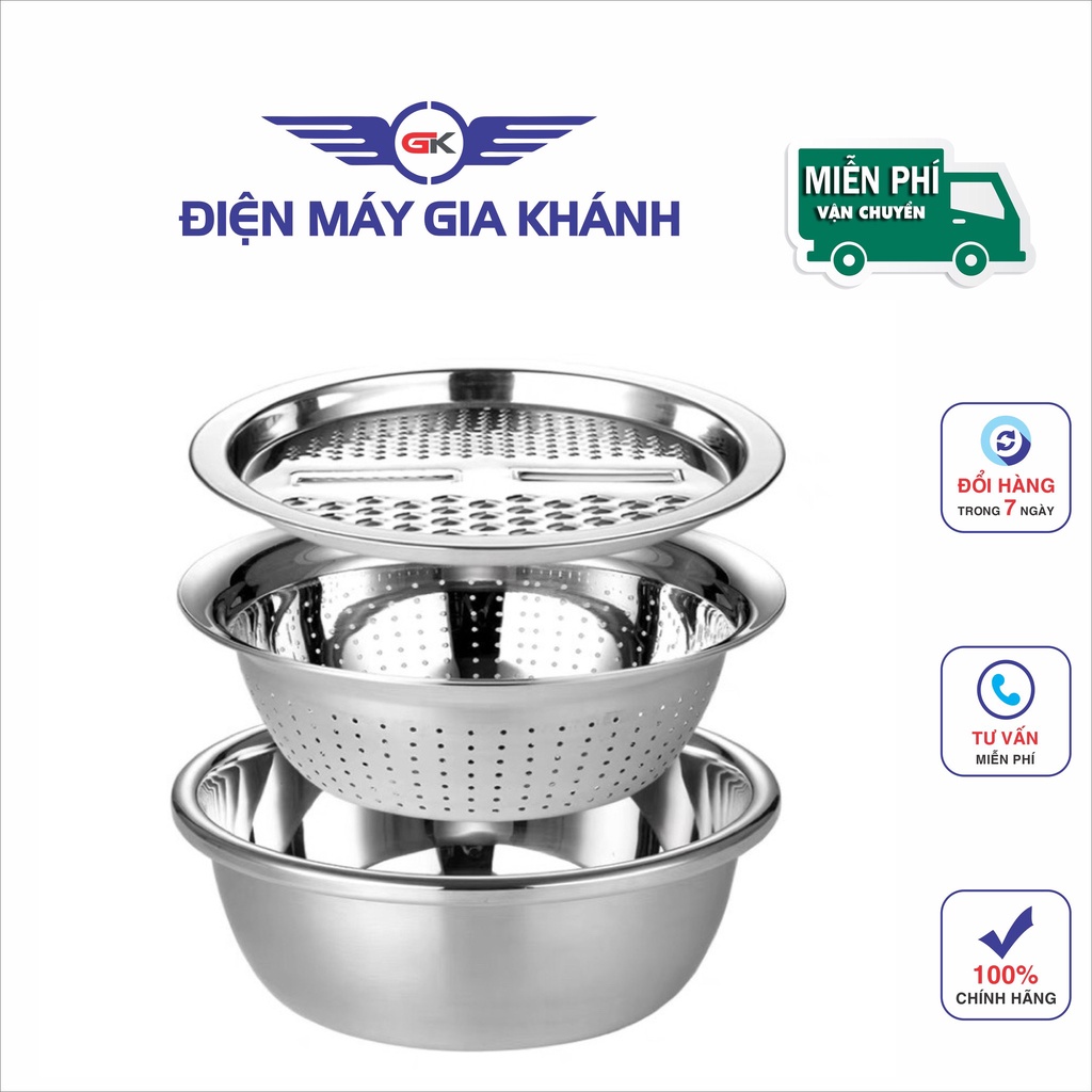 Bộ Rổ Nạo Rau Củ Quả Đa Năng Inox 3 in 1 - Bộ Rổ Nạo Củ Quả Kèm Chậu hàng đẹp
