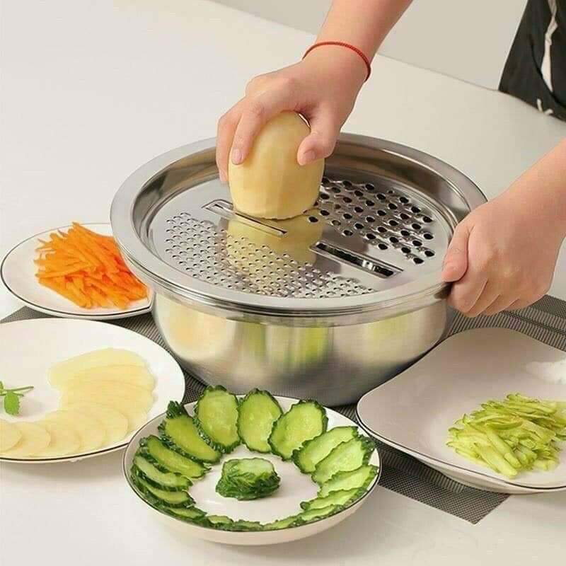Nhà cửa & Đời sống > Dụng cụ nhà bếp > Bàn nạo, dụng cụ bào, cắt || Bộ Rổ Nạo Rau Củ Quả Đa Năng Inox 3 in 1 - Bộ Rổ Nạo Củ Quả Kèm Chậu hàng đẹpCòn hàng