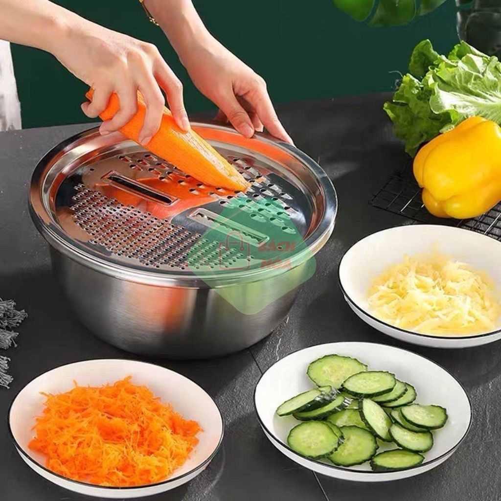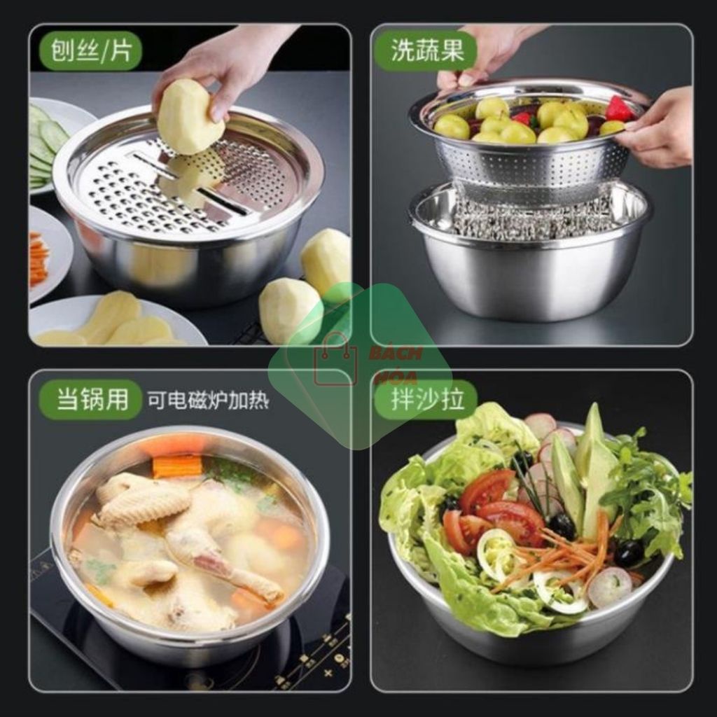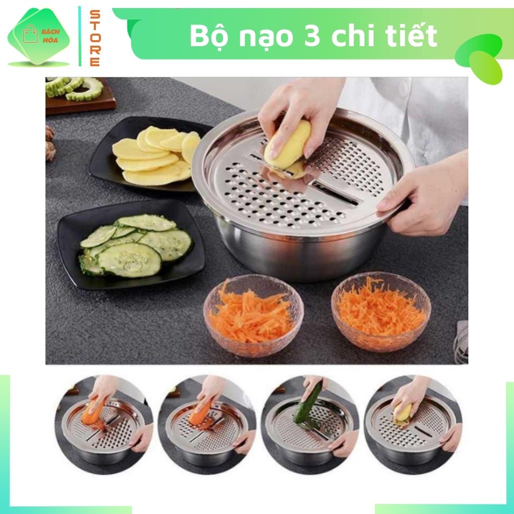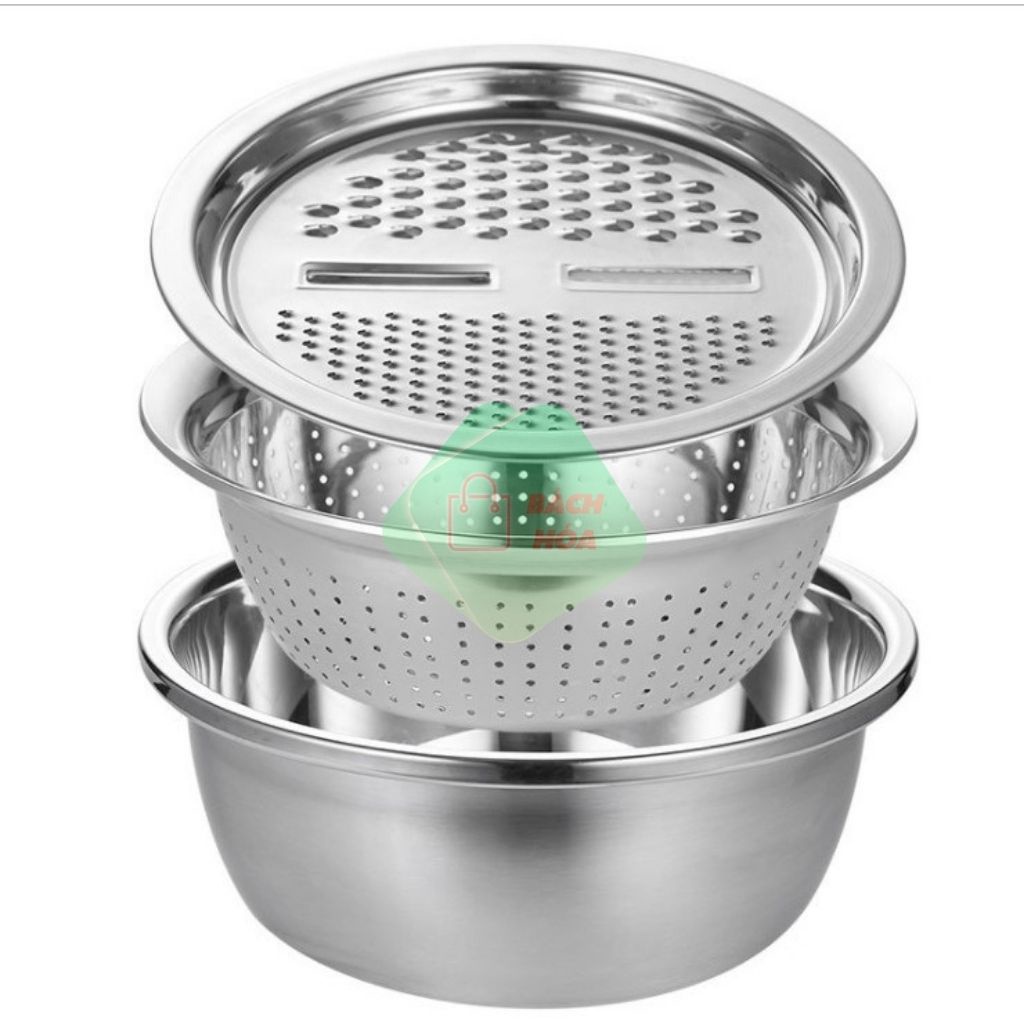 Bộ Rổ Nạo Rau Củ Quả Inox 3 Món Đa Năng, Tiện Lợi, An Toàn Cho Sức Khỏe Gia Đình Bạn