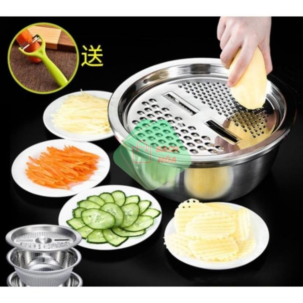 ️+ Bộ sản phẩm bao gồm : 01 Mặt nạo nhiều kiểu, 01 Rổ inox, 01 Chậu inox 100% cao cấp dày dặn.