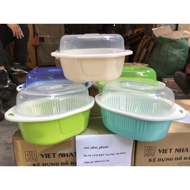 Nhà cửa & Đời sống > Dụng cụ chăm sóc nhà cửa > Chậu, xô & gáo nước || Rổ nắp bầu dục Việt Nhật, bộ rổ nhựa kèm chậu có nắp đậy rửa rau hoa quả hàng cao cấp tiện lợi (MS 3278-3279)Còn hàng