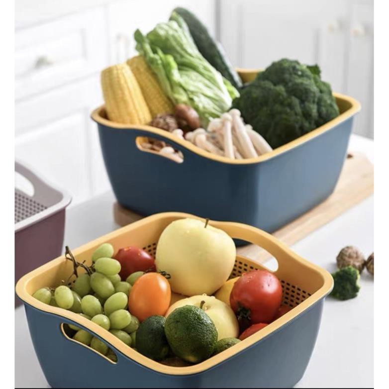 Nhà cửa & Đời sống > Dụng cụ chăm sóc nhà cửa > Chậu, xô & gáo nước || rổ nhựa 2 lớp hình vuông ,rổ đựng rau củ quả hàng xuất Nhật cao cấp 1320 GDTHCòn hàng