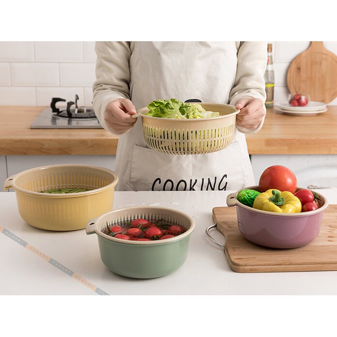 MÔ TẢ SẢN PHẨM:Rổ rửa rau kiêu chậu hai lớp tiện dụng - Có lỗ treo