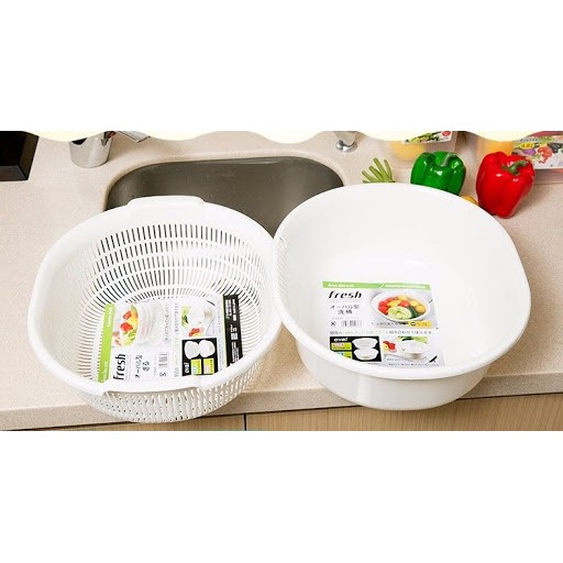 Công dụng:Đựng rau, hoa quả …Phẩn rổ hai bên thiết kế có thể cầm nắm dễ dàng. Chậu vừa dùng để rửa vừa làm khay hứng nước tiện dụng.