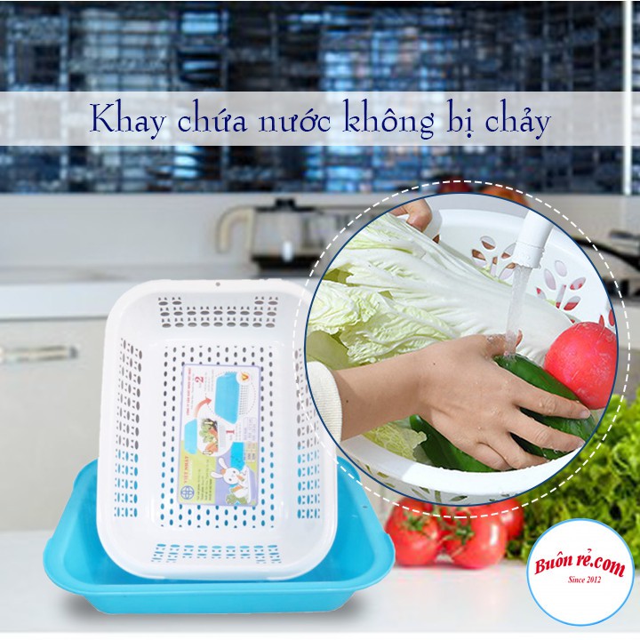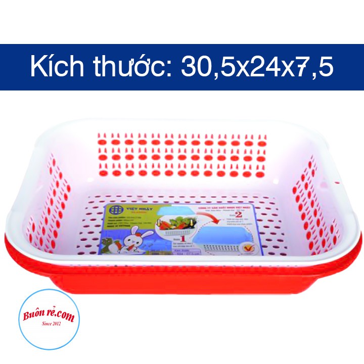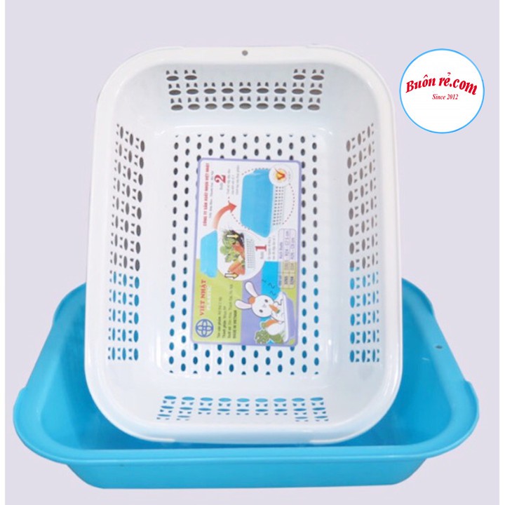 Rổ nhựa chữ nhật 2 lớp (3266) Việt Nhật đựng rau củ quả, Rổ úp cốc chén –Buôn rẻ 01392
