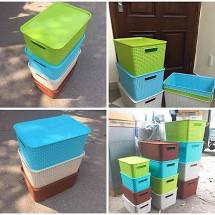 - Đựng đồ chơi, đựng quần áo em bé, đựng bất cứ thứ gì bạn muốn . Có nắp nên có thể xếp chồng lên nhau.