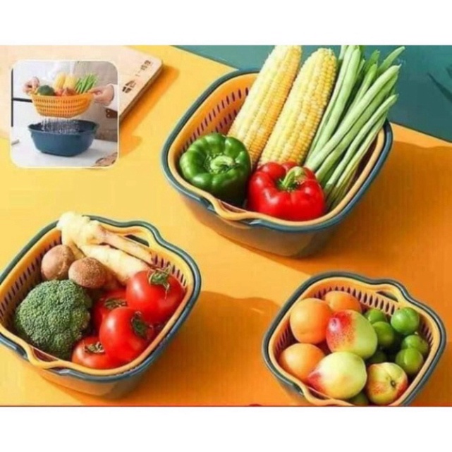 Kết hợp 2 loại rổ thành một đôi, một chiếc có công dụng để ráo, 1 chiếc để đựng nước, mang lại hiệu quả mỗi khi ngâm, rửa