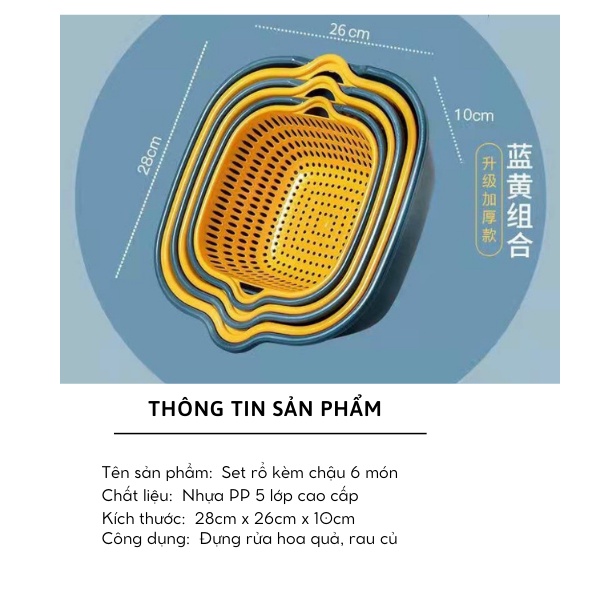 Set rổ nhựa 6 món -Bộ Rổ Nhựa Kèm Chậu 6 Món Cao CấpTên sản phẩm: Bộ Rổ Nhựa Kèm Chậu 6 Món Cao Cấp