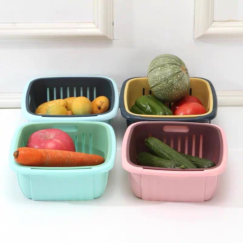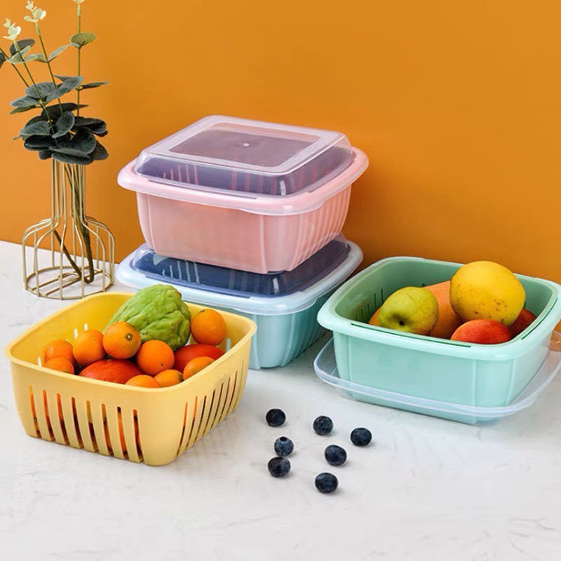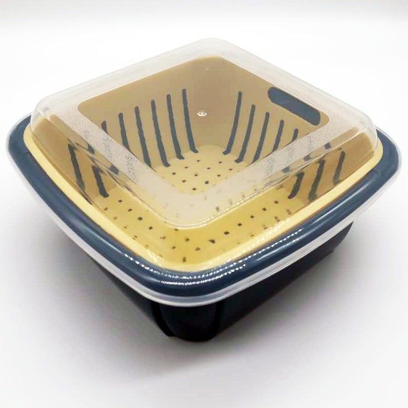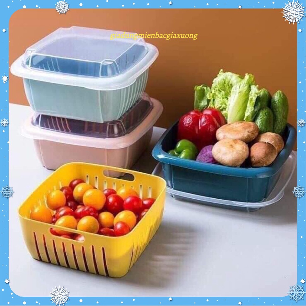 Rổ Nhựa Chữ Nhật Có Nắp Đựng Đồ Kèm Chậu 3 Trong 1 Tiện ích cho nhà bếp.