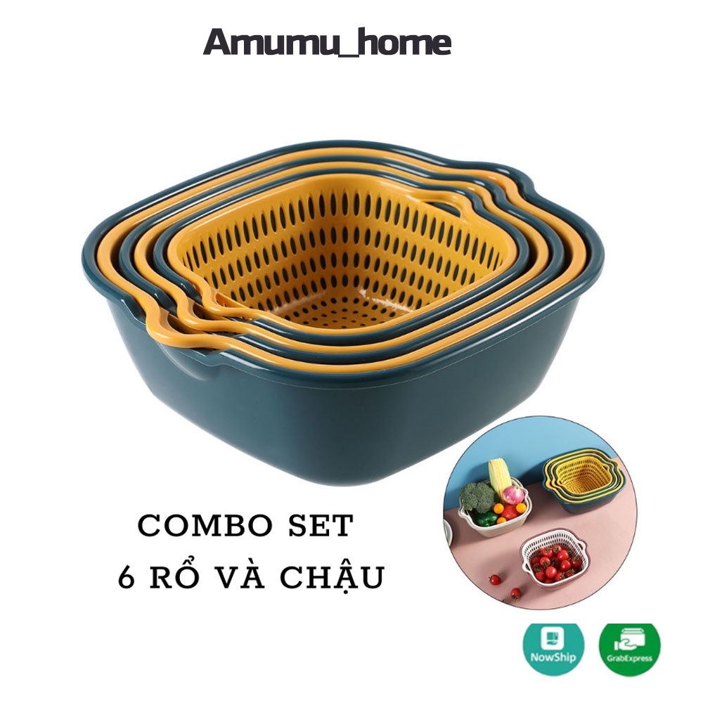 Combo 6 món rổ nhựa ráo nước, bộ rổ nhựa kèm chậu, set rổ nhựa 6 món 5 lớp bền bỉ chắc chắn🌺Chất liệu nhựa PP cứng và bền bỉ, an toàn và không độc hại.