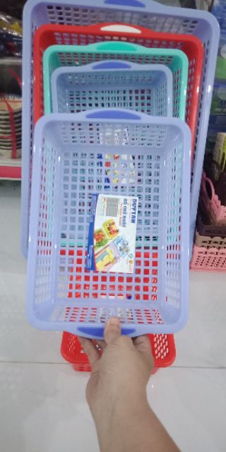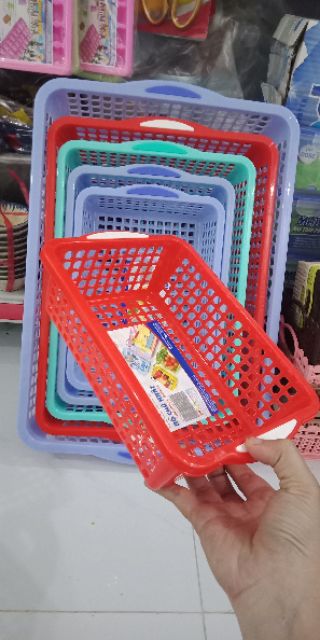 Rổ nhựa hình chữ nhật. Dùng đựng vật dụng, đồ vật trong gia đình.Sản phẩm có đủ 6 kích cỡ: (kích thước theo thông số chuẩn nhà sản xuất)
