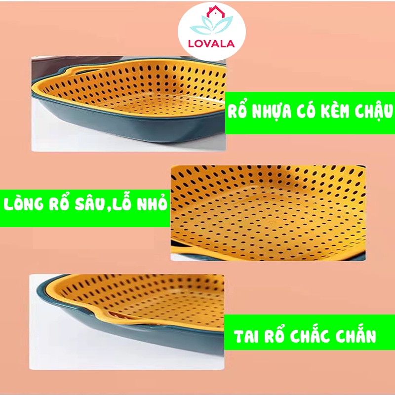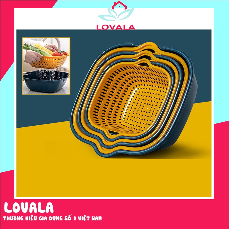 Rổ nhựa chữ nhật kèm chậu 6 món - Set rổ 6 món kèm chậu LOVALA RB01