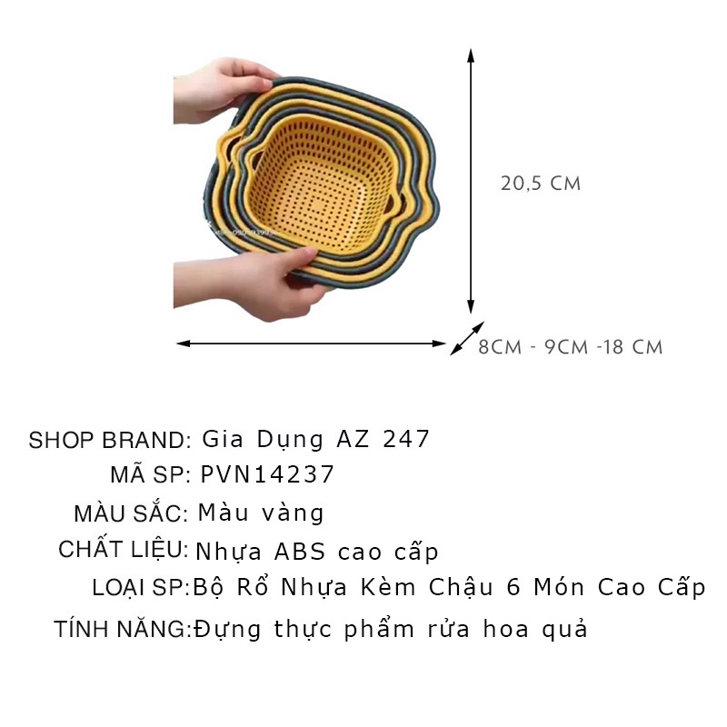 Giới thiệu Rổ nhựa chữ nhật vuông tròn combo 6 rổ nhựa đựng đồ nhà bếp kèm chậu hai lớp cao cấp tiện lợi PVN14237