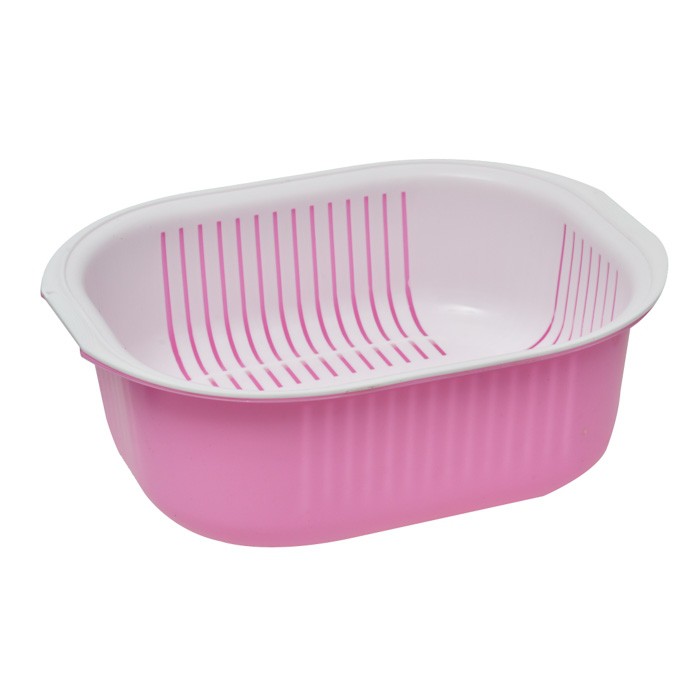 + Rổ trên được thiết kế dạng nan đan xen dễ dàng ráo nước, rổ dưới như một chiếc chậu nhỏ hứng nước từ rổ trên nhỏ xuống