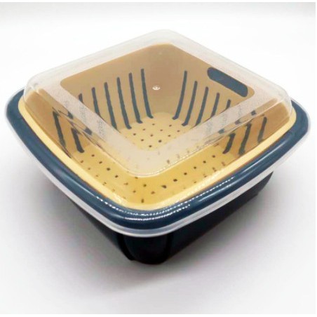 Tích hợp chậu, rổ, nắp đậy 3 trong 1 vừa dùng để rửa rau củ, hoa quả, thức ăn, vừa làm hộp đựng thực phẩm rất tiện lợi.