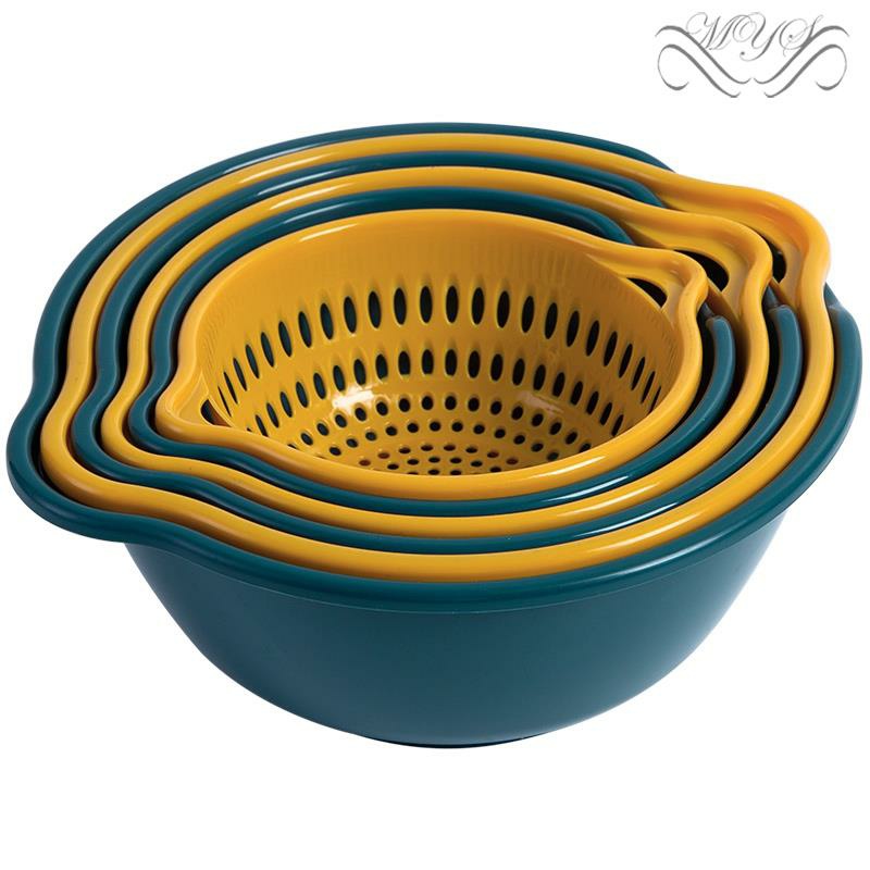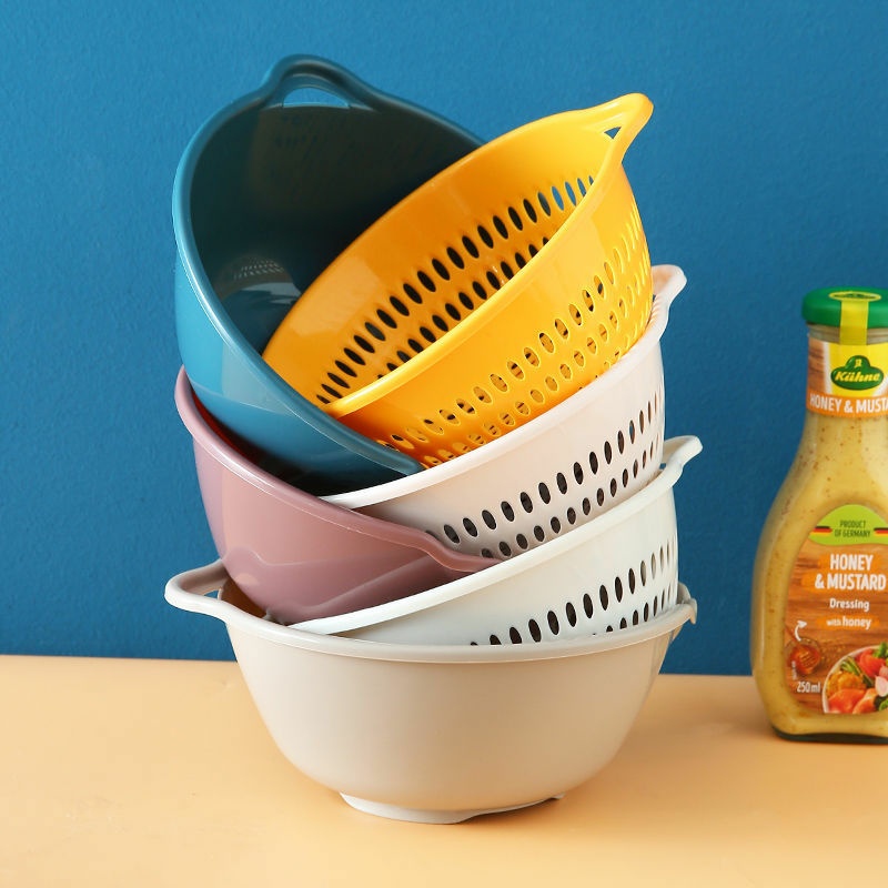 Kết hợp 2 loại rổ thành một đôi, một chiếc có công dụng để ráo, 1 chiếc để đựng nước, mang lại hiệu quả mỗi khi ngâm, rửa