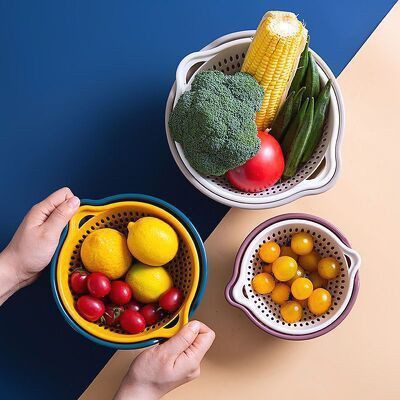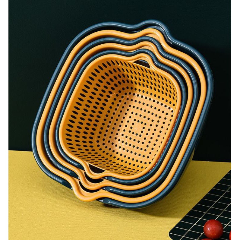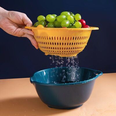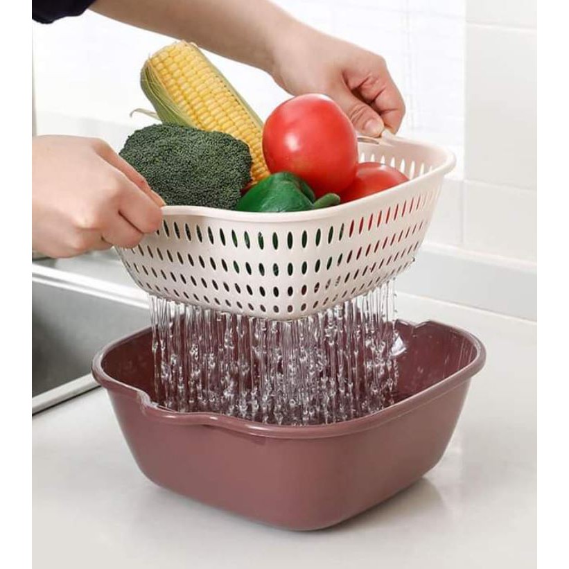Kết hợp 2 loại rổ thành một đôi, một chiếc có công dụng để ráo, 1 chiếc để đựng nước, mang lại hiệu quả mỗi khi ngâm, rửa