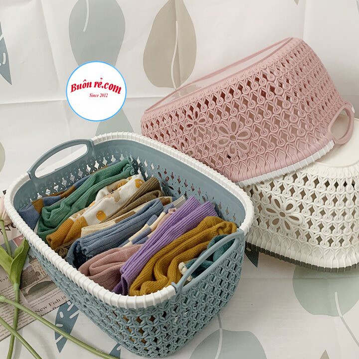 Rổ nhựa giả đan mây có quai cầm Việt Nhật, giỏ hoa 2 size màu pastel xinh xắn (MS: 3377) – Buôn Rẻ 00690
