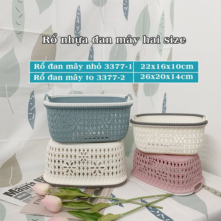 Rổ nhựa giả đan mây có quai cầm Việt Nhật, giỏ hoa 2 size màu pastel xinh xắn (MS: 3377) - GD247