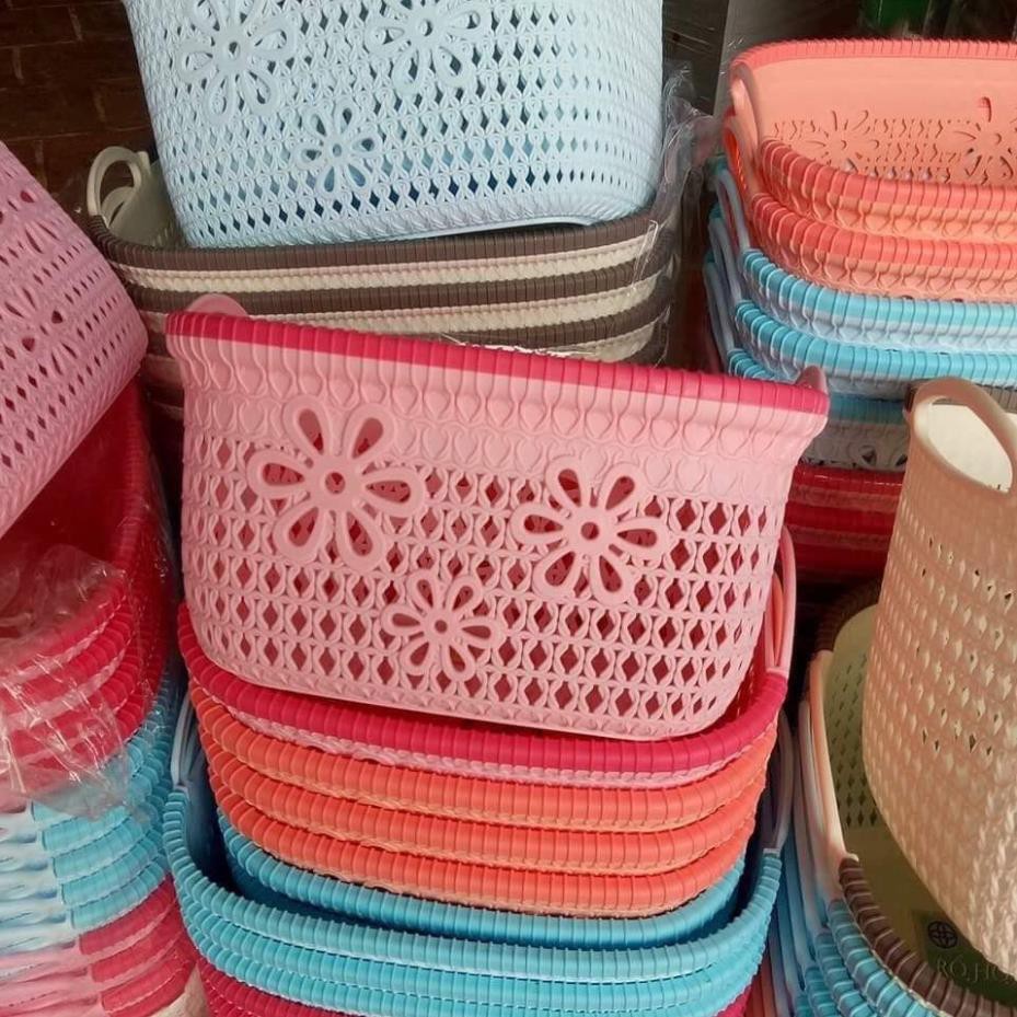 Nhà cửa & Đời sống > Nội thất > Tủ bếp || Rổ nhựa giả đan mây đựng đồ có quai cầm Giỏ nhựa đan Hàn Quốc nhựa Việt Nhật MS 3378 3377Còn hàng