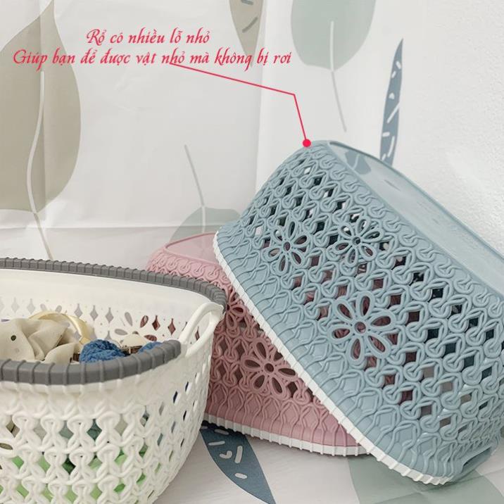 Rổ nhựa giả đan mây đựng đồ có tay cầm Giỏ nhựa đan Việt Nhật MS 3378 3377