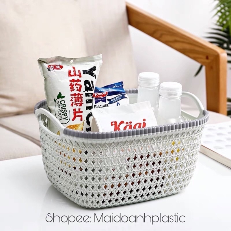 Rổ Nhựa Giả Đan Mây Có Quai Cầm Cỡ Nhỏ 3378-1 Buôn Rẻ 00690============================