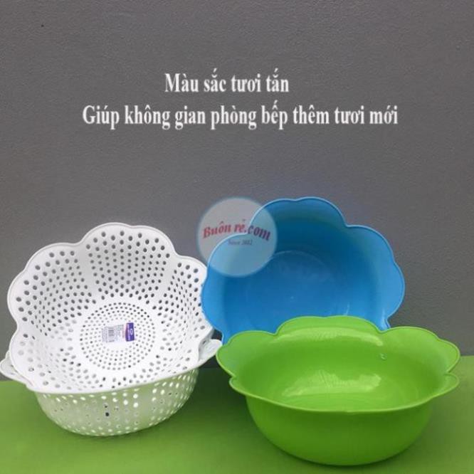 - Rổ nhựa hoa mai 2in1 được thiết kế thông minh 2 in 1 với lớp trong rổ thiết kế dạng mắt lưới giúp làm ráo nước, lớp bên ngoài thiết kế nhưa một chiếc chậu nhỏ giúp hứng nước từ rổ bên trong.