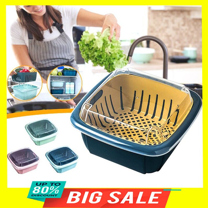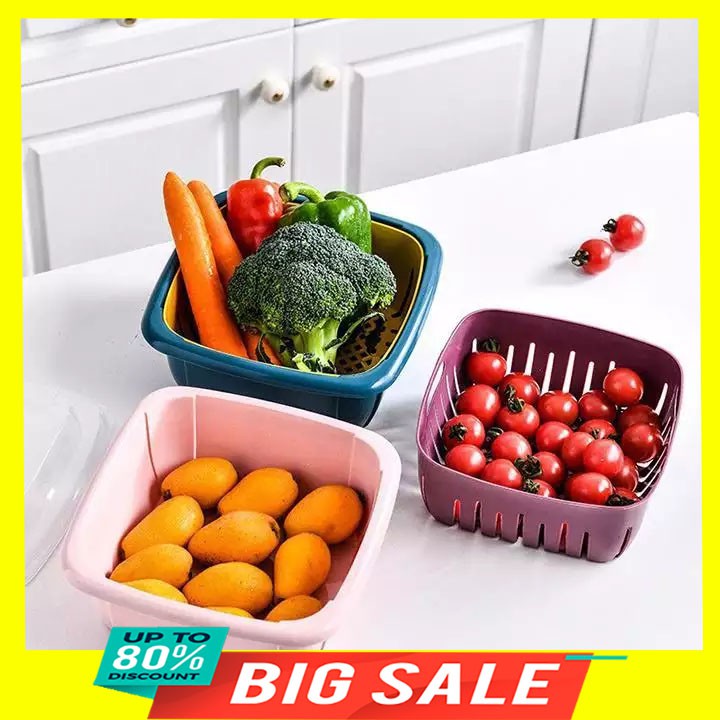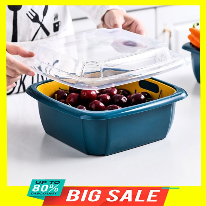 - Chậu nhựa kèm rổ dùng để rửa rau củ, trái cây, có kèm nắp đậy giúp bảo quản thực phẩm tránh bụi hay côn trùng hoặc lưu trữ thực phẩm trong tủ lạnh.