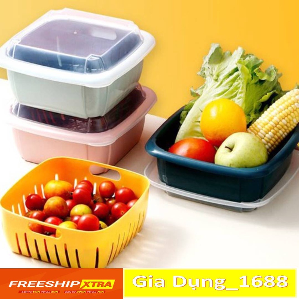 Tên Sản Phẩm: Rổ Nhựa Kèm Chậu 2 Trong 1 Có Nắp Đậy- Chậu nhựa kèm rổ dùng để rửa rau củ, trái cây, có kèm nắp đậy giúp bảo quản thực phẩm tránh bụi hay côn trùng hoặc lưu trữ thực phẩm trong tủ lạnh.