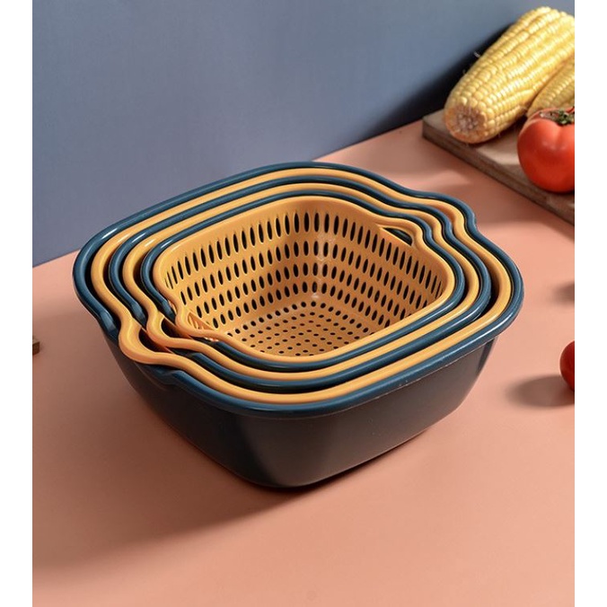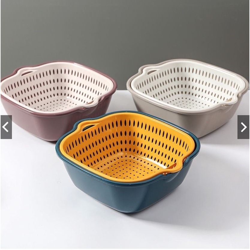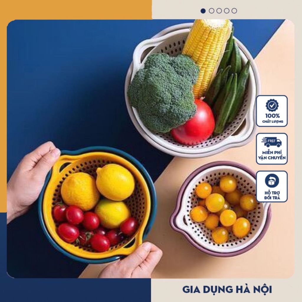 Kết hợp 2 loại rổ thành một đôi, một chiếc có công dụng để ráo, 1 chiếc để đựng nước, mang lại hiệu quả mỗi khi ngâm, rửa