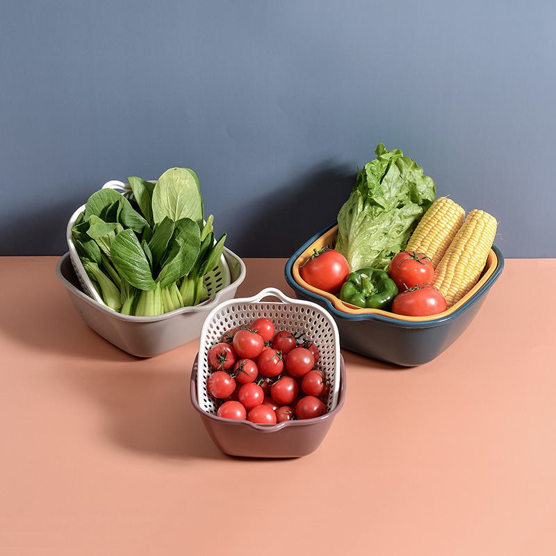 Set 6 Món Rổ Kèm Chậu Đựng Đồ Đa Năng Chất Liệu Nhựa Cao CấpRổ nhựa chữ nhật kèm chậu đựng đồ Combo set 6 món chậu và rổ nhựa vuông