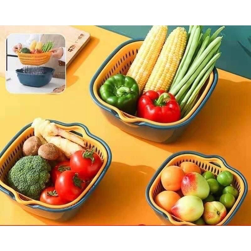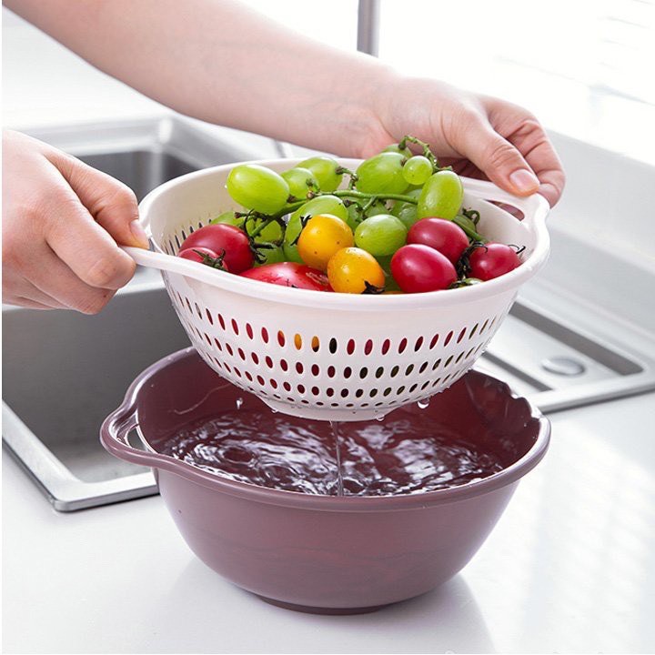 -Kết hợp 2 loại rổ thành một đôi, một chiếc có công dụng để ráo, 1 chiếc để đựng nước, mang lại hiệu quả mỗi khi ngâm, rửa