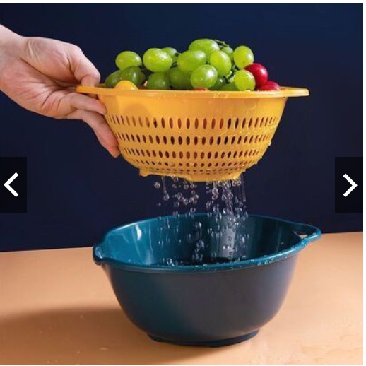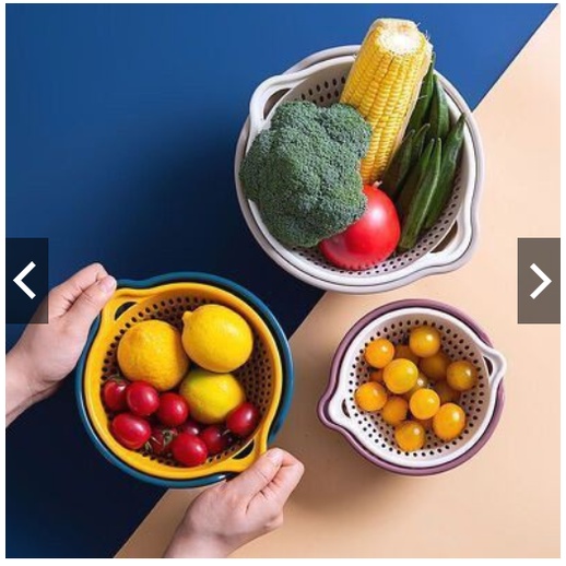 Kết hợp 2 loại rổ thành một đôi, một chiếc có công dụng để ráo, 1 chiếc để đựng nước, mang lại hiệu quả mỗi khi ngâm, rửa