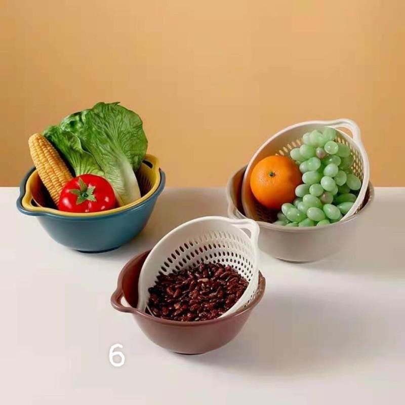 Kết hợp 2 loại rổ thành một đôi, một chiếc có công dụng để ráo, 1 chiếc để đựng nước, mang lại hiệu quả mỗi khi ngâm, rửa