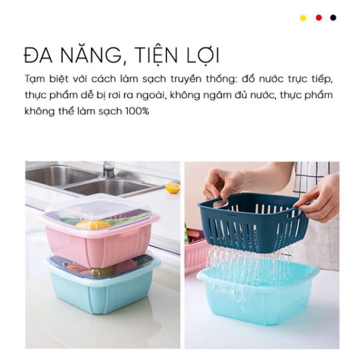 Tích hợp chậu, rổ, nắp đậy 3 trong 1 vừa dùng để rửa rau củ, hoa quả, thức ăn, vừa làm hộp đựng thực phẩm rất tiện lợi.