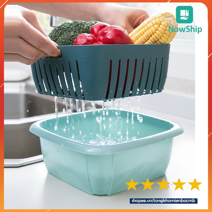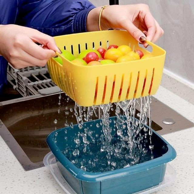 Bộ rổ nhựa kèm chậu có nắp đậy