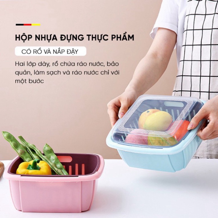 Tích hợp chậu, rổ, nắp đậy 3 trong 1 vừa dùng để rửa rau củ, hoa quả, thức ăn, vừa làm hộp đựng thực phẩm rất tiện lợi.