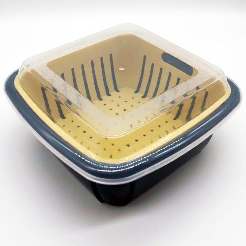Tích hợp chậu, rổ, nắp đậy 3 trong 1 vừa dùng để rửa rau củ, hoa quả, thức ăn, vừa làm hộp đựng thực phẩm rất tiện lợi.