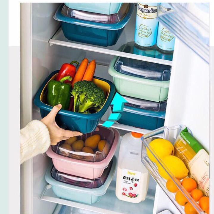 Tích hợp chậu, rổ, nắp đậy 3 trong 1 vừa dùng để rửa rau củ, hoa quả, thức ăn, vừa làm hộp đựng thực phẩm rất tiện lợi.