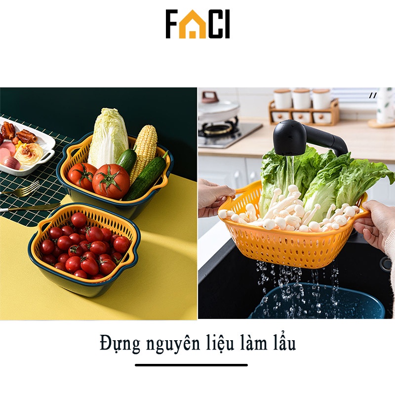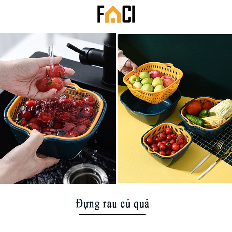 Cấu tạo 2 lớp đa năng: Chậu để đựng nước hoặc hấng nước, rổ-giá nhựa có chức năng đựng rau, củ, quả, tách nước rất hiệu quả