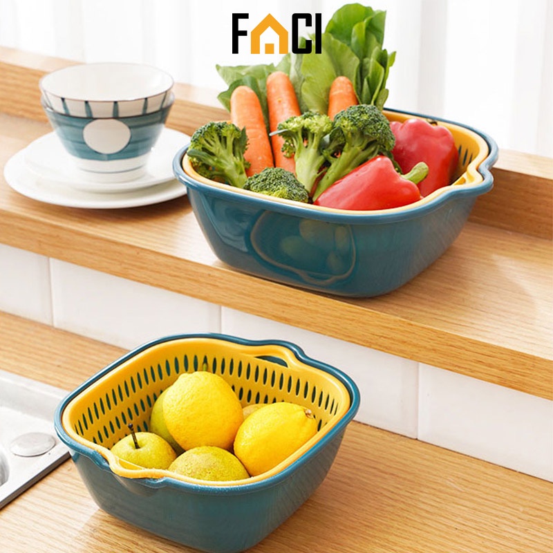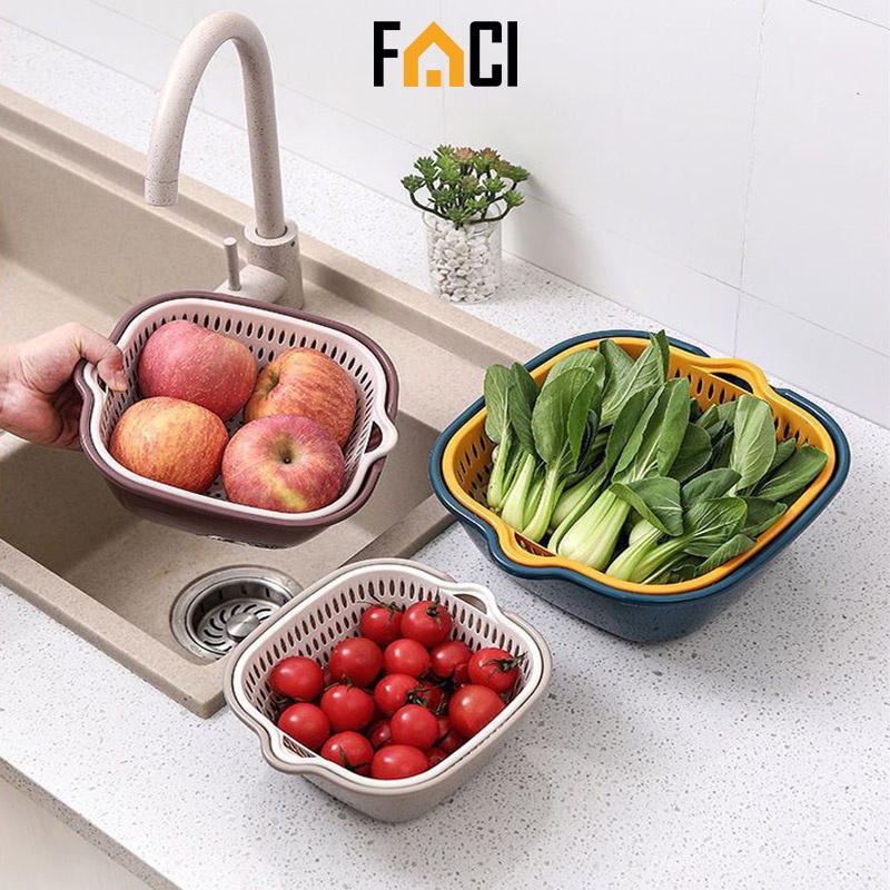 Nhà cửa & Đời sống > Dụng cụ nhà bếp > Khác || Rổ nhựa kèm chậu ráo nước set bộ combo 6 món xếp gọn gàng có quai treo rửa rau củ quả trái cây đa năng gia dụng tiện lợiCòn hàng
