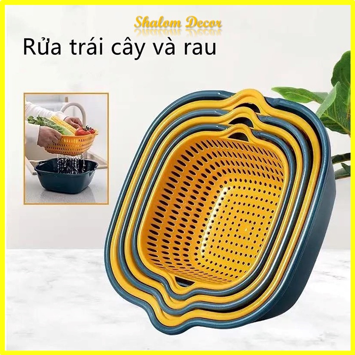 - Bộ Rổ Nhựa Kèm Chậu dễ dàng thu gọn 6 trong 1