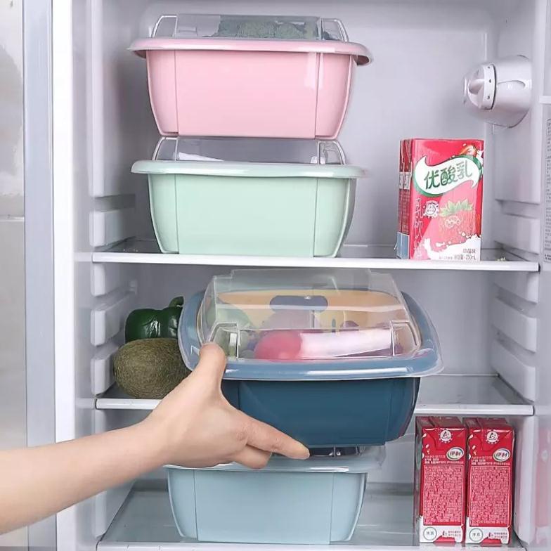 Rổ nhựa kèm thau 2in1 có nắp đậy