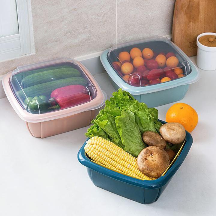 Rổ nhựa kèm thau có nắp đậy bảo quản thực phẩm
