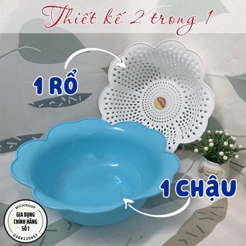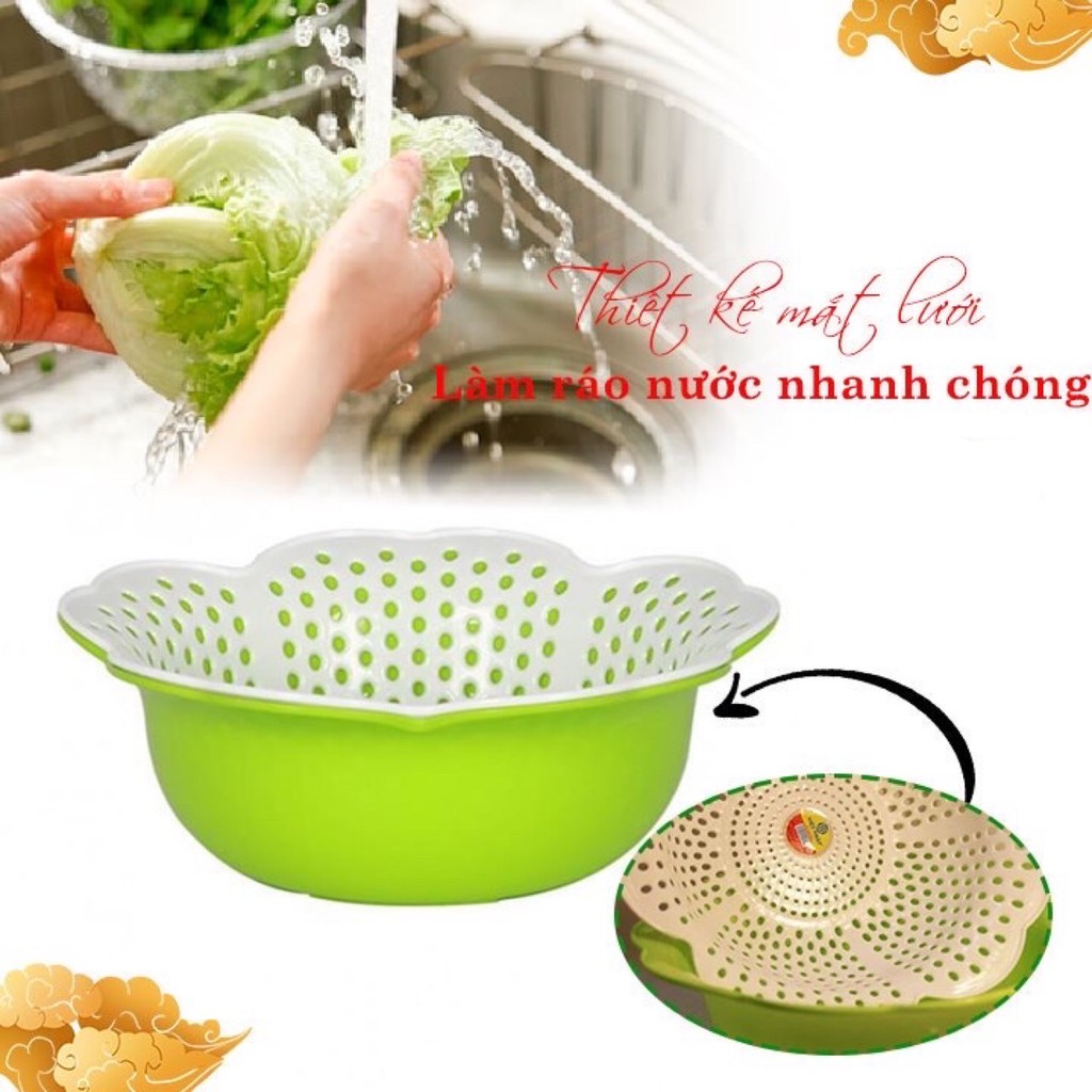 Nhà cửa & Đời sống > Dụng cụ chăm sóc nhà cửa > Chậu, xô & gáo nước || Rổ Nhựa Kèm Thau Hình Hoa Mai Nhựa Việt Nhật An Toàn Bền Đẹp - Rổ Thau Rổ 2 Lớp Nhà BếpCòn hàng